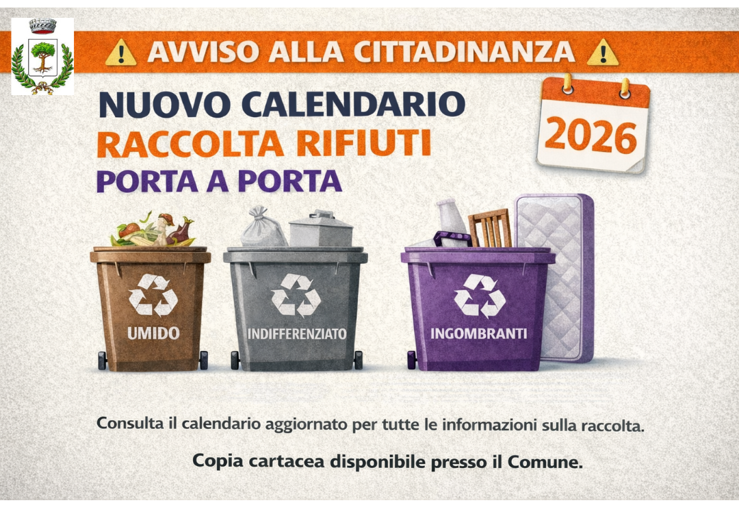 Nuovo Calendario per la raccolta porta a porta dei rifiuti ingombranti e indifferenziato.